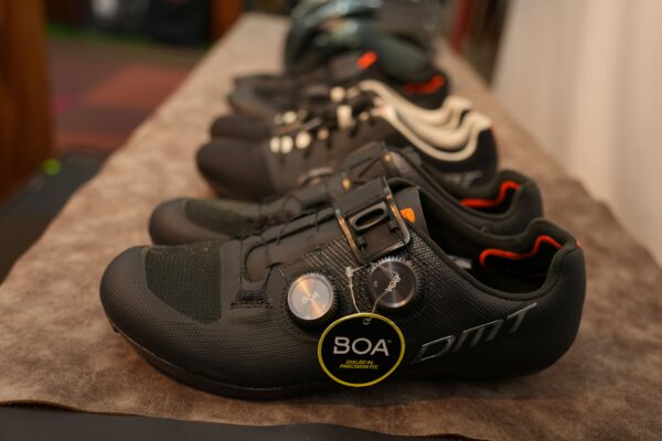 イタリアンブランドのヘルメット「MET」、シューズ「DMT」。