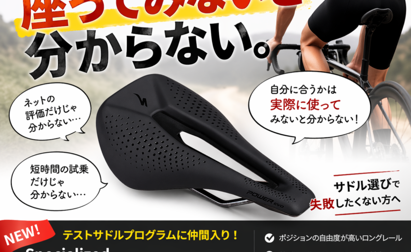 テストサドルにSpecialized POWER EVO 143mm追加|2週間レンタルで実走チェック可… 2026.04.21 SBFニュース!! サドル レンタル 北浦和店NEWS!! 自転車イベント/サイクリング 自転車カスタム/チューンナップ 自転車パーツ/CYCLE 小物 用品 ロードバイク クロスバイク