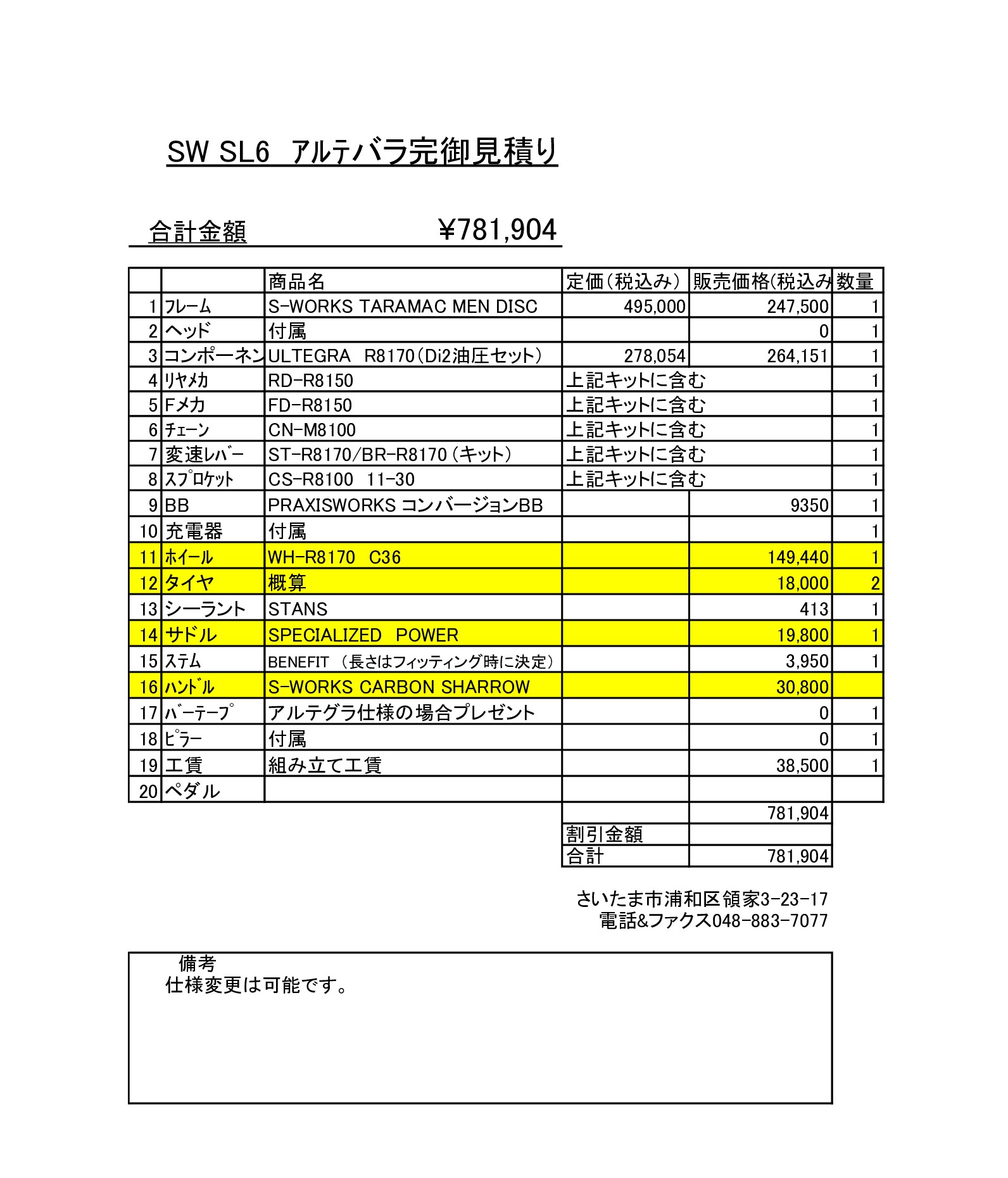 SW-SL6 R8170バラ完見積もり
