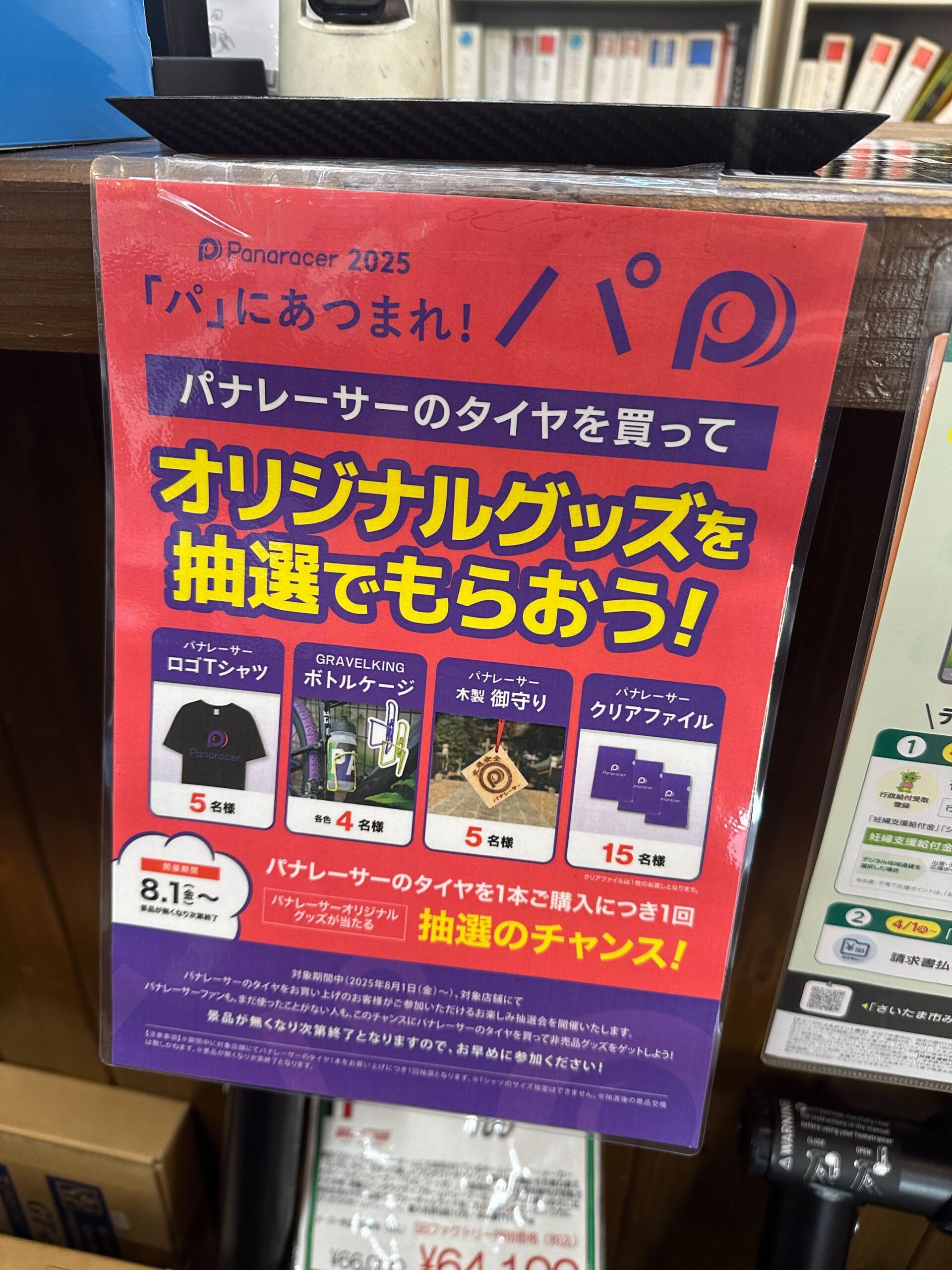 8月1日からパナレーサーのタイヤを購入いただいたお客様に参加いただけるお楽しみ抽選会を開催しております!