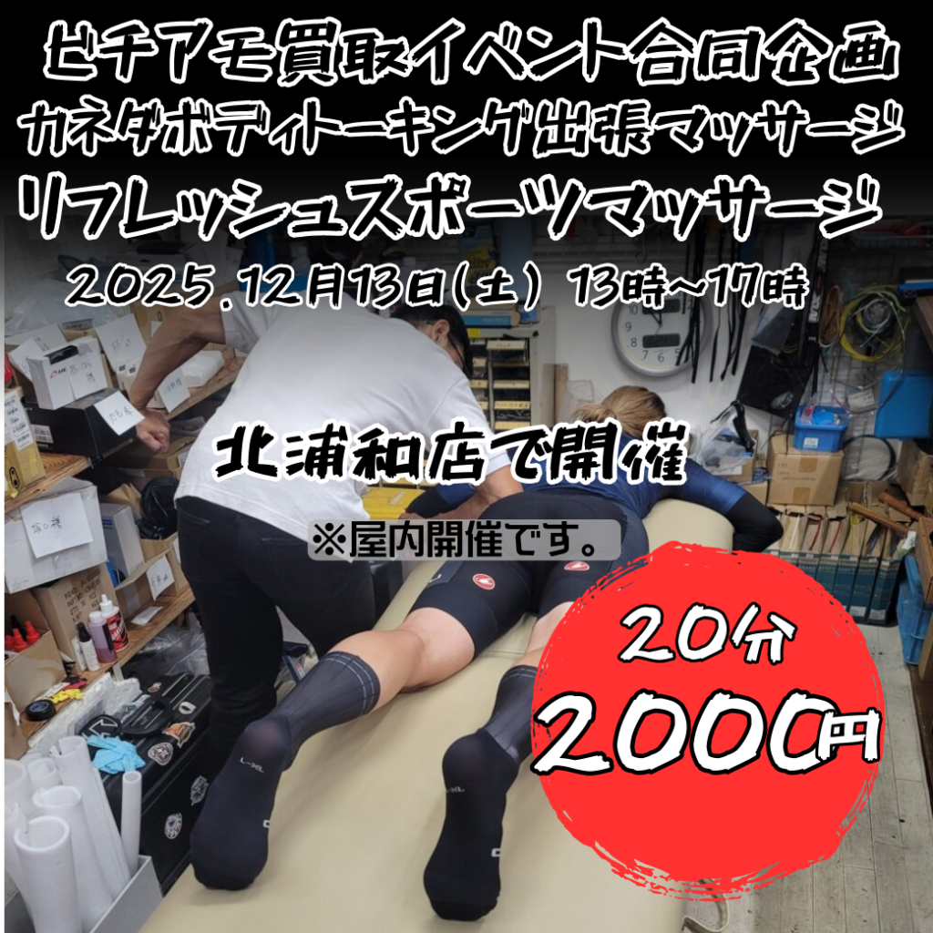 さらに今回は、毎回ご好評いただいている金田BODY TALKING(カネダ ボディトーキング)による出張マッサージを、12月13日(土)限定で同時開催します。