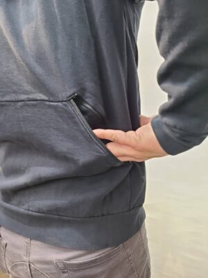 MEN’S LEGACY WORDMARK ZIP-UP HOODIEは後ろにチャック付きのバックポケットがあります。