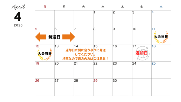 発送日や、返却日のほかに、着用上の注意などが記載されているので必ず確認してください。