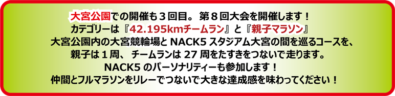 NACK5チームランは42.195kmの距離を一周約1560mのコースを27周回します。