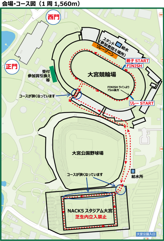 大宮競輪場内がスタートゴール&タスキ交換エリアです。