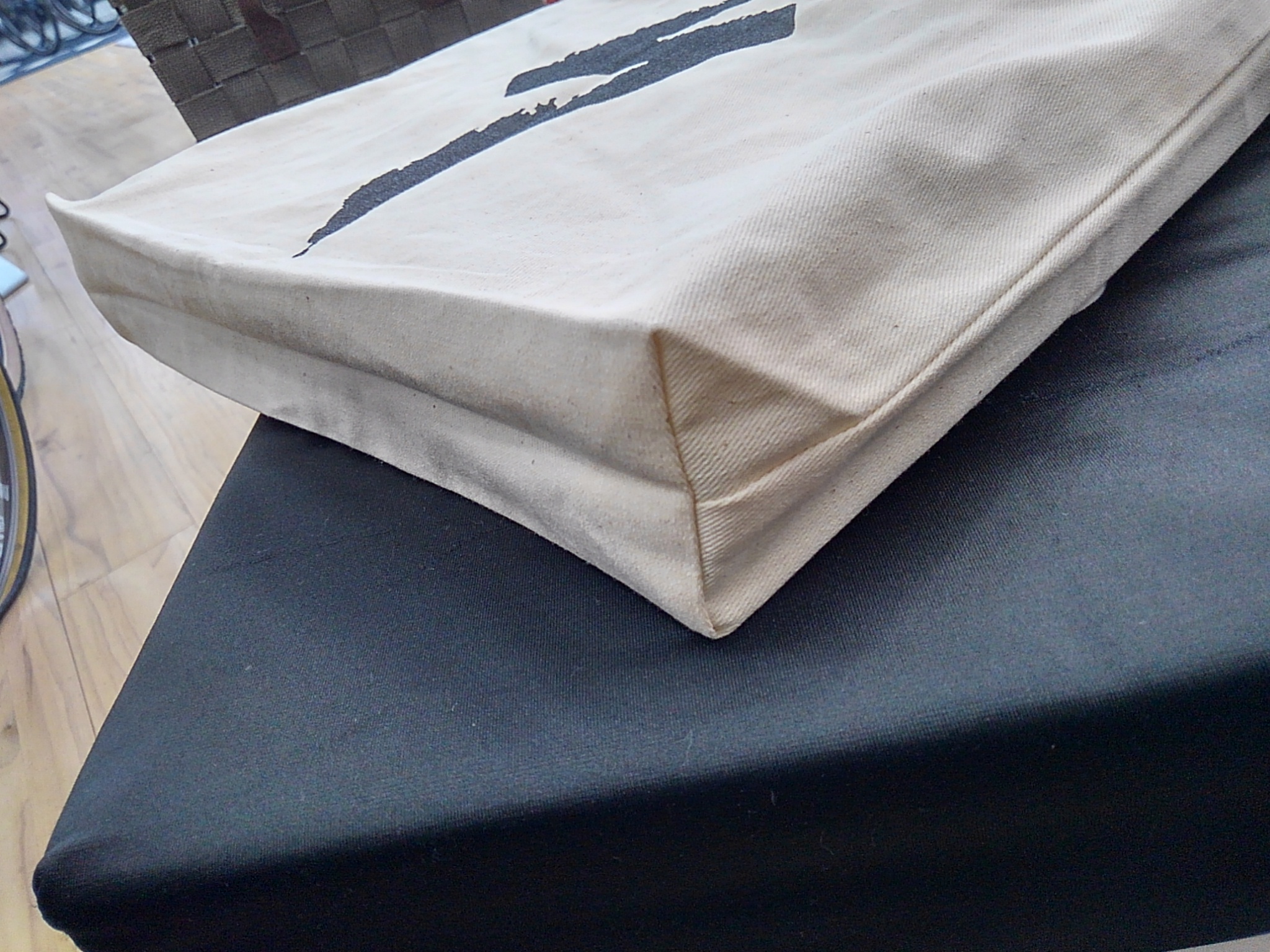 少し厚手の生地で、シンプルにブラックのロゴを配置しています。