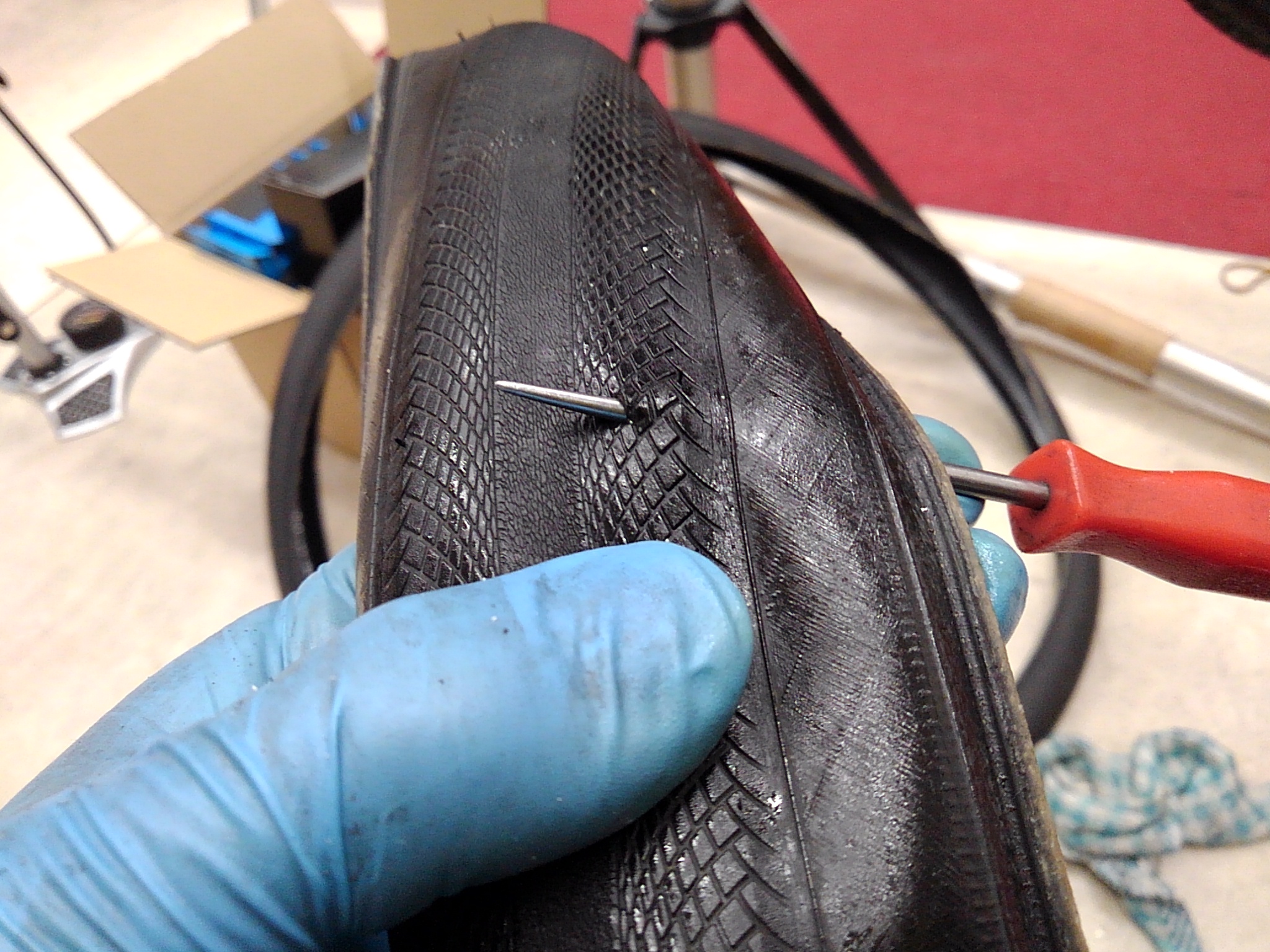 その前回のパンク痕を確認するとなにかナナメに入ったようなキズでした。