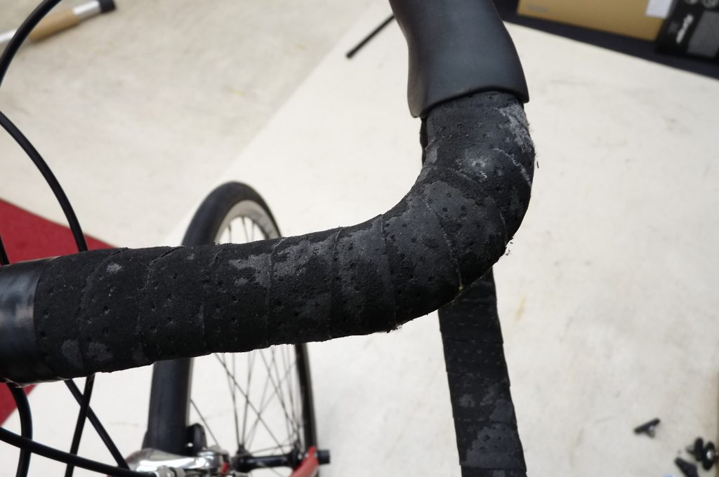 バーテープ、通勤号ならもう少し限界まで粘って…という雰囲気かも?ですが、バーテープの下のケーブル類の交換やブラケットフードの交換時にタイミングを合わせる事にもなるので他の部分の確認も忘れずに。