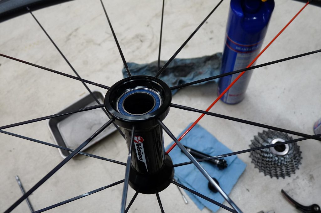 ホイールの内部、ベアリング部分。シールドカートリッジなら交換もよくありますが、ここまで開ける前の場所にすでにかなりの汚れが入り込んでいる事があります。その状態でガタが出てきて雨で長時間走ったりすればすぐに大きなダメージとなります。