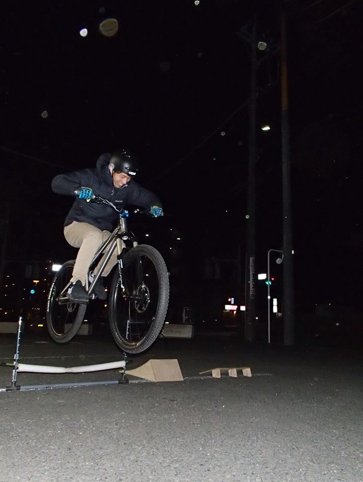 MTBならではのアクションを練習するのも楽しいです!ただジグザグに走るだけ、簡単なスラロームもやってます。