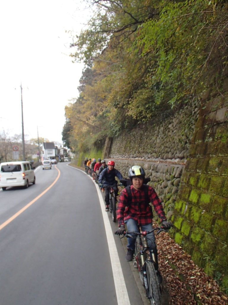 そして平日ものんびりサイクリング、まるでロードバイクの集団走行のようですがMTBです笑