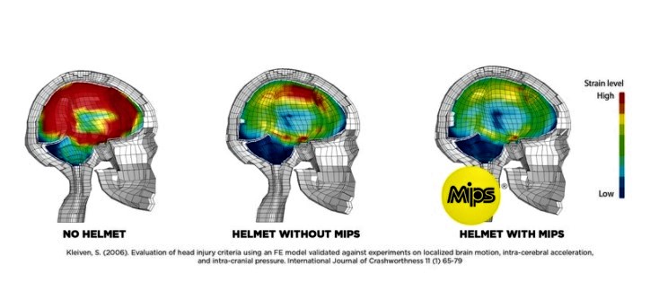 MIPS is really important feature in helmet. It is typically only found in high end bike helmet. What is it? MIPS is a system that helps to redirect the energy of an impact. A low friction layer sits between the helmet shell and your head. This allows a sliding motion of 10 to 15 millimetres in all directions when an angular force is applied. Studies indicate that this reduces some of the rotational forces transmitted to the brain during angled impacts.
